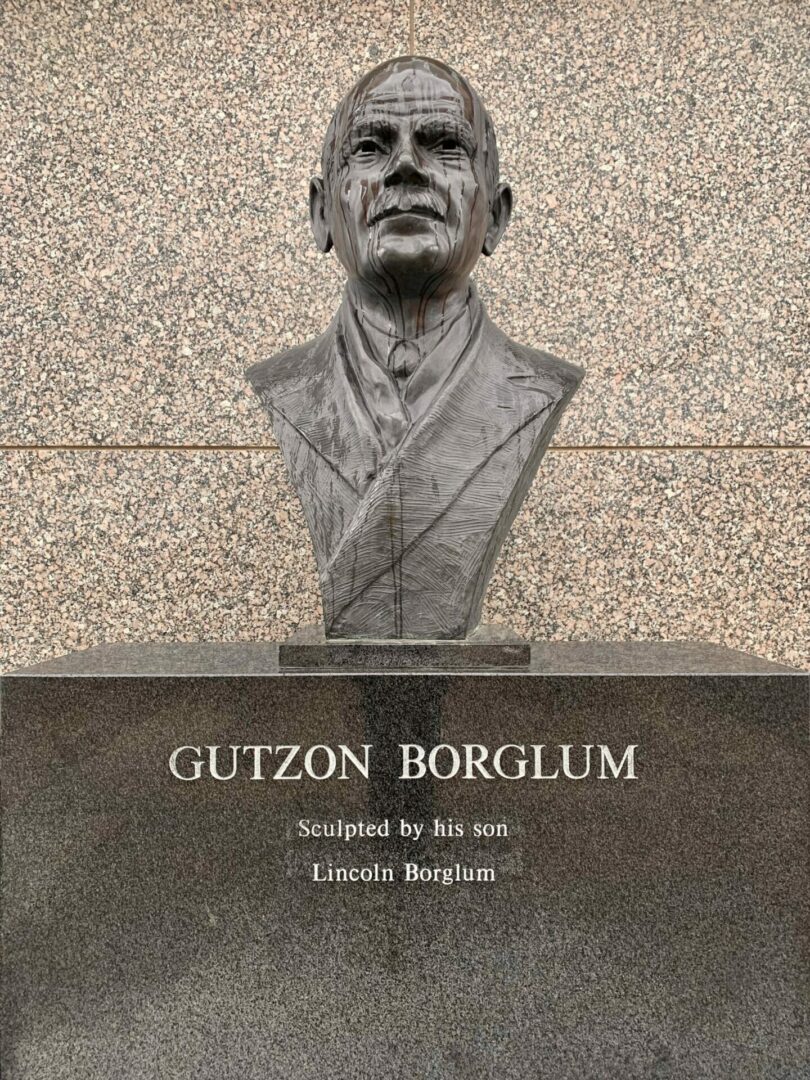 Một trong những thiết kế đó được giao cho nhà tạc khắc núi John Gutzon de la Mothe Borglum (gọi tắt là Gutzon Borglum). Ông đã chọn vùng núi Mount Rushmore để tạc khắc chủ đề lịch sử Hoa Kỳ suốt từ lúc lập quốc cho đến thời của ông sinh sống.