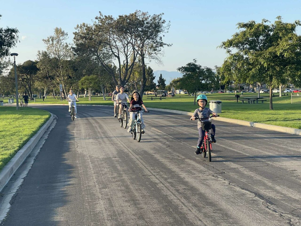 Hoạt động ngoài trời tốt cho sức khỏe thể chất và tinh thần. Trong hình: Các bé đạp xe ở Mile Square Park. (Hình: Đ.Trang)