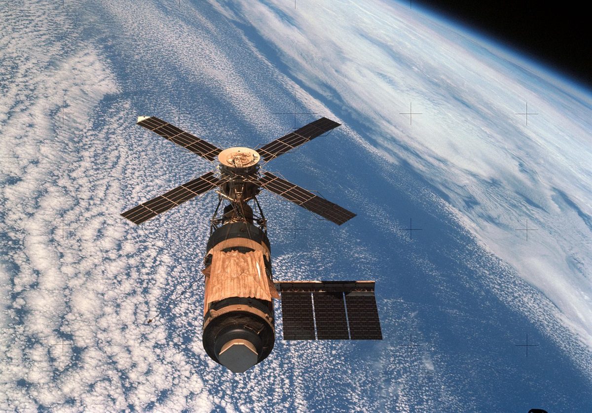 Skylab, trạm không gian đầu tiên của Mỹ, được phóng lên vũ trụ vào năm 1973. Với kích thước to bằng một chiếc xe lửa, Skylab không chỉ là một công trình vĩ đại của NASA mà còn là niềm tự hào của nước Mỹ vào thời kỳ hậu-Apollo. Trạm không gian này được thiết kế để nghiên cứu khí tượng, chụp ảnh Trái Đất và đặc biệt là để phi hành gia có thể ăn đồ hộp trong trạng thái không trọng lượng.