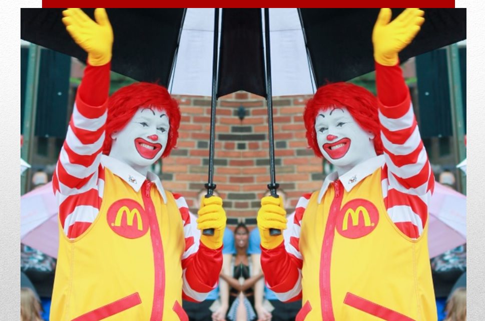 Ronald McDonald – chú hề tóc đỏ vui vẻ, linh vật vui nhộn của hãng thức ăn nhanh McDonald’s – đóng vai trò giống như Mickey Mouse đối với Walt Disney.