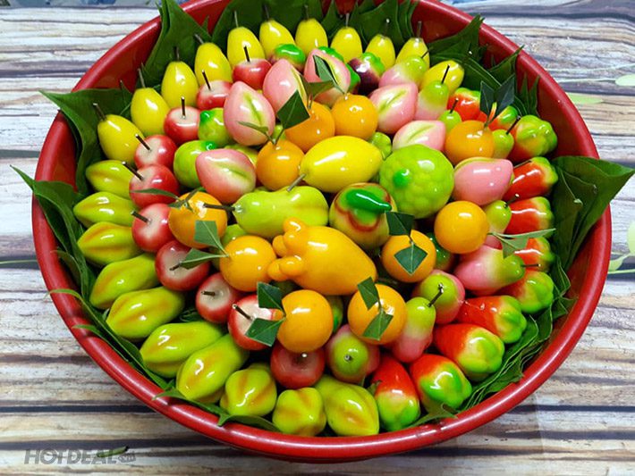 Nguyên liệu từ đậu xanh, làm thành những trái cây như: xoài, lựu, khế, ớt, cà chua, …y hệt về màu sắc và kiểu dáng.Thoạt nhìn tưởng trái cây, chỉ khi bạn cầm cái bánh lên ngắm nghía và cắn một miếng thì mới biết bánh đậu xanh vừa ngọt vừa bùi. Nhưng tôi không biết chị là cháu nội của Cụ Mai Khắc Đôn (Quan Thượng thư bộ lễ dưới triều vua Duy Tân). Và cũng là cháu gọi Hoàng Phi Mai Thị Vàng bằng cô ruột. Hôm nay có dịp lên nhà thăm, chị mới kể cho tôi nghe. Thế là tôi làm một cuộc phỏng vấn nhỏ: Xin chị kể lại một vài kỷ niệm với người cô ruột Hoàng Phi của mình!