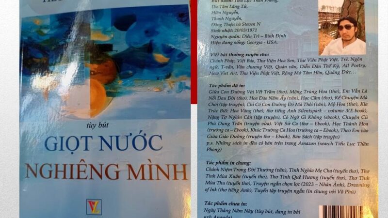 Giọt Nước Nghiêng Mình, tập tùy bút của nhà văn Nguyễn Thanh Hiền, bút danh Tiểu Lục Thần Phong, sách dày 289 trang, gồm có 48 tùy bút ngắn, tranh…