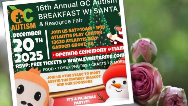 Nhân dịp Giáng Sinh, và cũng như mọi năm, tổ chức bất vụ lợi OC Autism sẽ tổ chức chương trình “Breakfast with Santa” từ 10 giờ sáng đến 1…