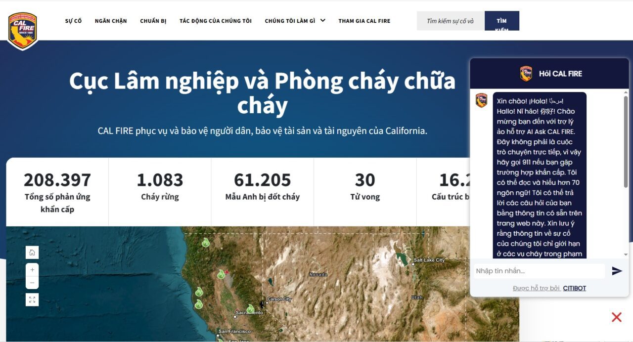 Công cụ này được thiết kế để giúp người dân California dễ dàng tiếp cận các tài nguyên phòng cháy quan trọng và thông tin khẩn cấp gần như theo thời gian thực, cung cấp hỗ trợ bằng 70 ngôn ngữ.
