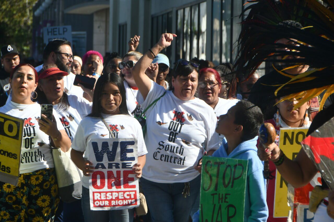 Sau các phát biểu đó, đám đông biểu tình chuẩn bị ùa ra đường, và có màn trình diễn văn hóa của một nhóm thổ dân Aztec để tô điểm văn hóa của những người sống tại Los Angeles với các điệu nhảy, đốt trầm hương, và thổi kèn vỏ ốc.