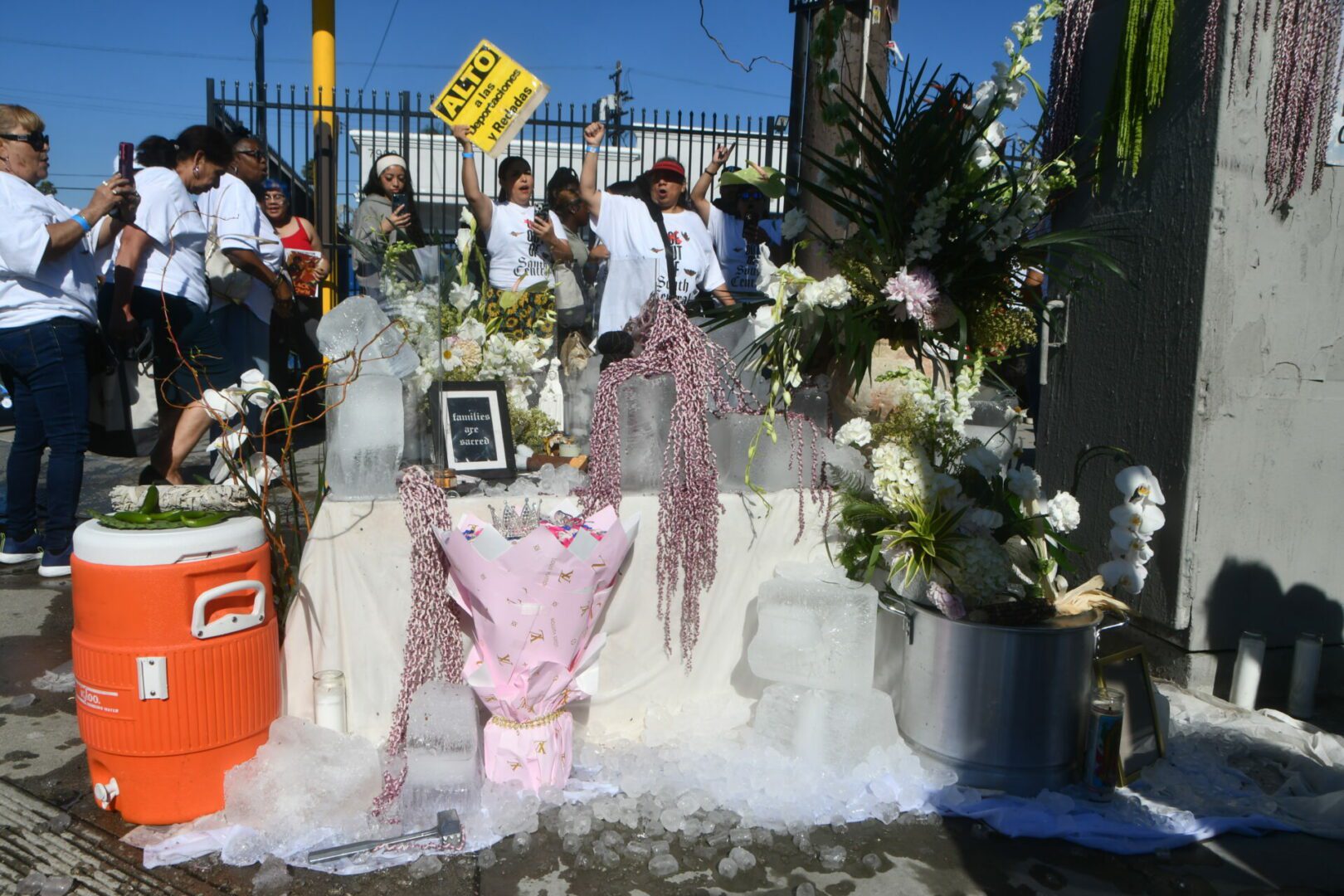 Sau đó, họ dừng lại trên lề đường ở ngã tư đường Vermont với đường số 79, nơi có đặt một bàn thờ làm bằng nước đá, tượng trưng cho ICE, và là nơi cầu nguyện cho những người bị bắt.