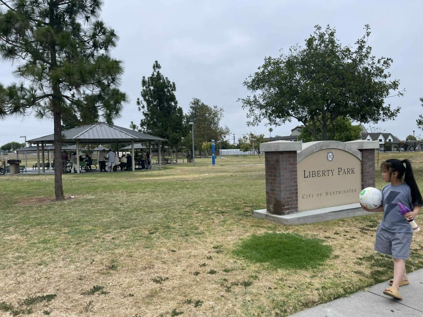 Many residents of Midway City have to go to parks in neighboring cities such as Liberty Park in Westminster. (Photo: Doan Trang)