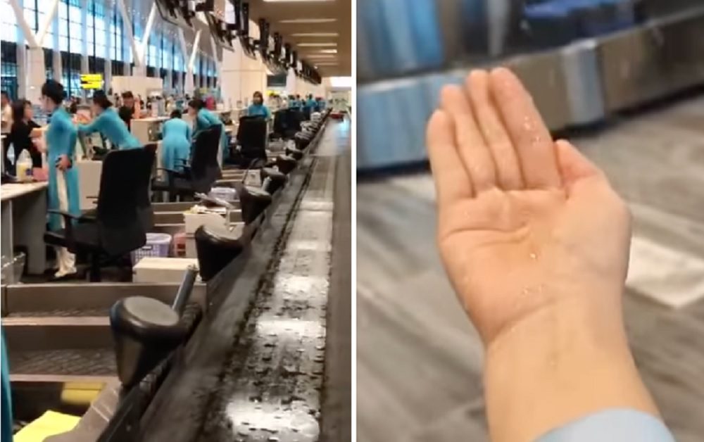 Cụ thể, trưa 24 Tháng Năm 2025 tại khu vực kiểm tra vé và băng chuyền hành lý của Vietnam Airlines ở nhà ga T3, hành khách bất ngờ vì nước chảy xuống từ các khe mái.