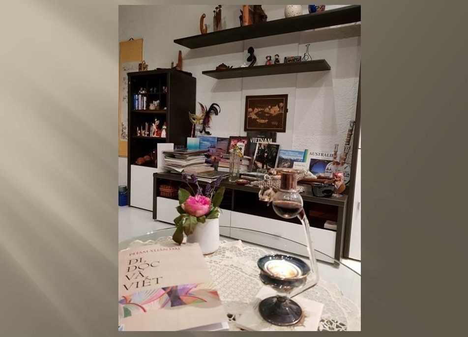 -Dì tôi tặng tôi đó. Dì dọn vào nhà cho người cao niên Seniorenresidenz. Nhiều đồ đạc dì gắn bó lắm, mà đâu có đem theo hết được. Dì còn muốn tặng tôi cây đàn dương cầm. Tôi đành chịu. Nhà tôi chật chội quá rồi. Thật ra, nếu dì bán rẻ, có người mua ngay. Nhưng dì thương đàn quá. Dì hy vọng, cho tôi, dì còn cơ hội được thấy đàn.