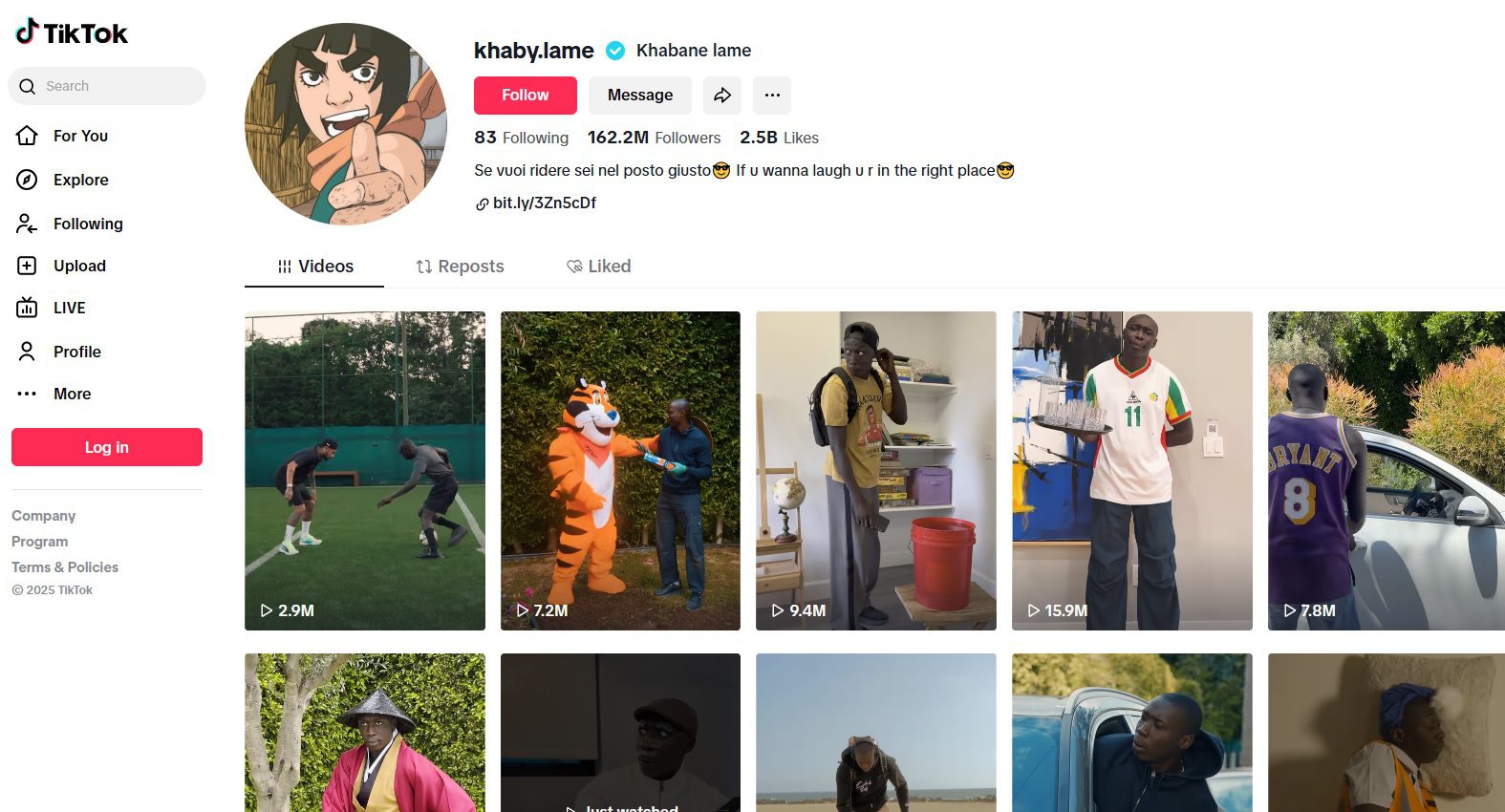 Khaby, 25 tuổi, là một “hiện tượng truyền thông xã hội” người Ý gốc Senegal và người được follow nhiều nhất trên TikTok, với hơn 162 triệu tài khoản. Anh đạt được danh tiếng toàn cầu trong thời gian phong tỏa vì đại dịch năm 2020 với phong cách hài kịch câm, quan sát độc đáo của mình.