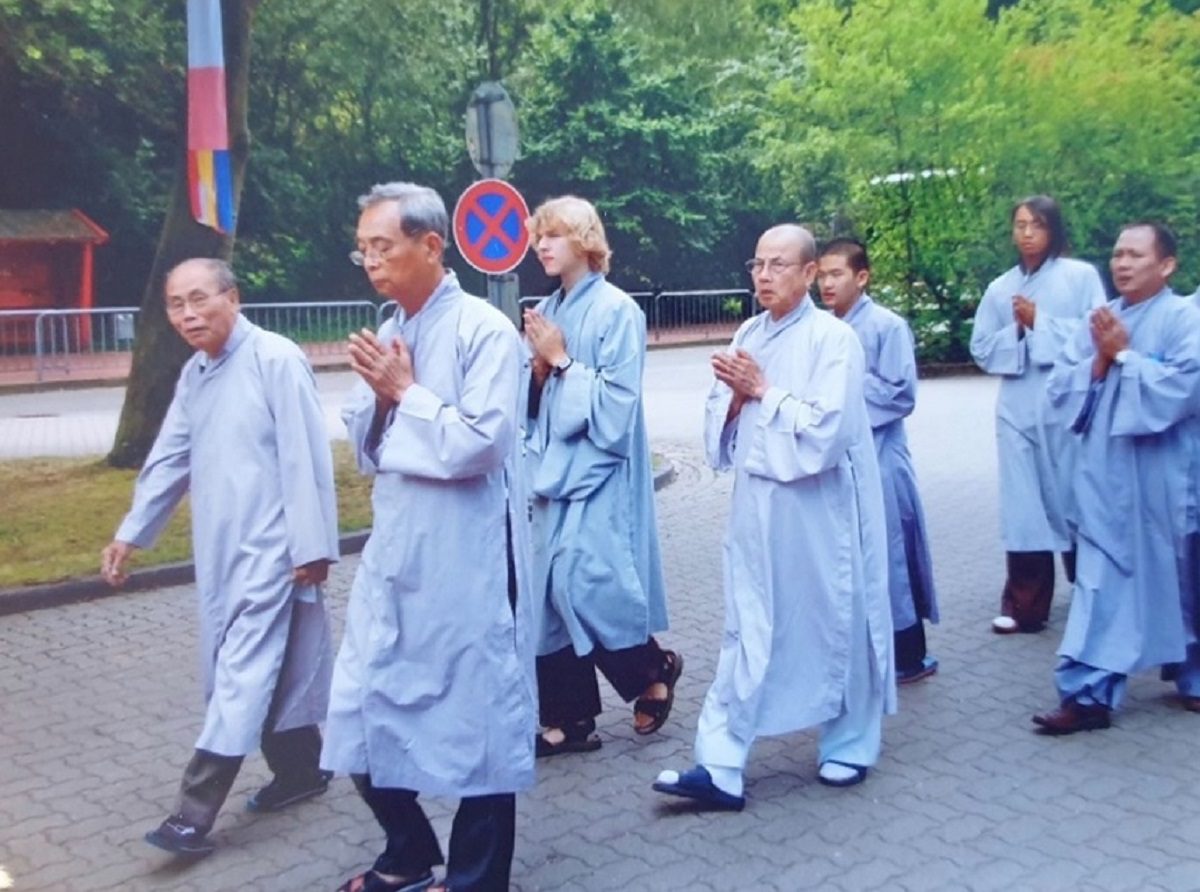 Anh Lễ (thừ hai từ trái) tham dự khóa tu học Âu Châu. (Hình: tác giả cung cấp)
