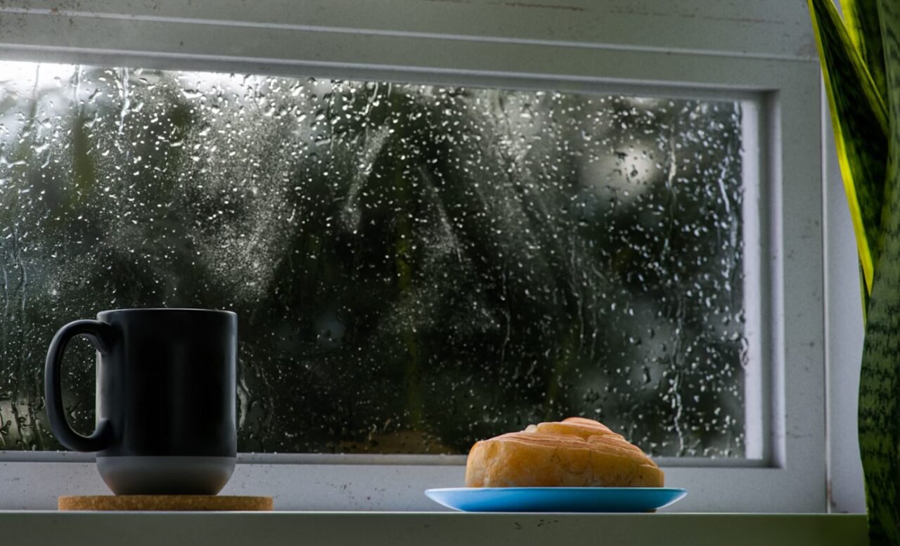 Nhưng chưa tới “một lát” thì mưa, gió đã nổi lên, trong nhà kín mít mà vẫn nghe tiếng gió. Ngó xuyên qua vách kiếng, trong ánh sáng yếu ớt của buổi chiều, tuy gió chưa mạnh, mưa chưa nhiều nhưng đủ làm những cành cây trụi lá bị gió đẩy ngã nghiêng, những giọt mưa tạt vào vách kiếng rào rào nghe như lời của thiên nhiên cảnh báo. Những ngày mưa rơi và tuyết đổ, tôi chỉ nghĩ thoáng qua ánh mặt trời và không có ý chờ ánh nắng ấm như những ngày hè.